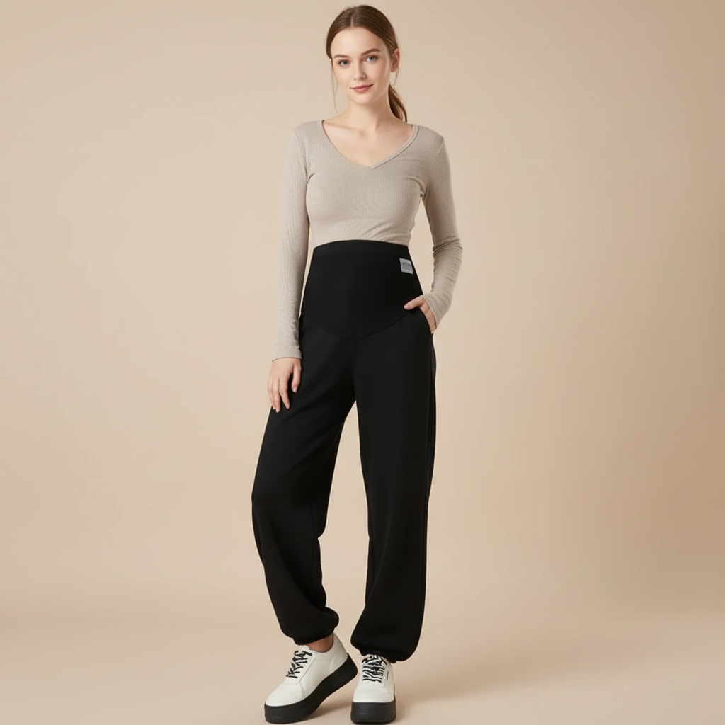Light, breathable comfort designed for active days, cozy days, and everything in between. These spring–autumn maternity sweatpants feature a soft high-belly panel, a relaxed loose-leg fit, and practical pockets — giving you the perfect balance between movement and comfort. Whether you’re walking, stretching, running errands, or relaxing at home, they’re made to keep up with you through every trimester.